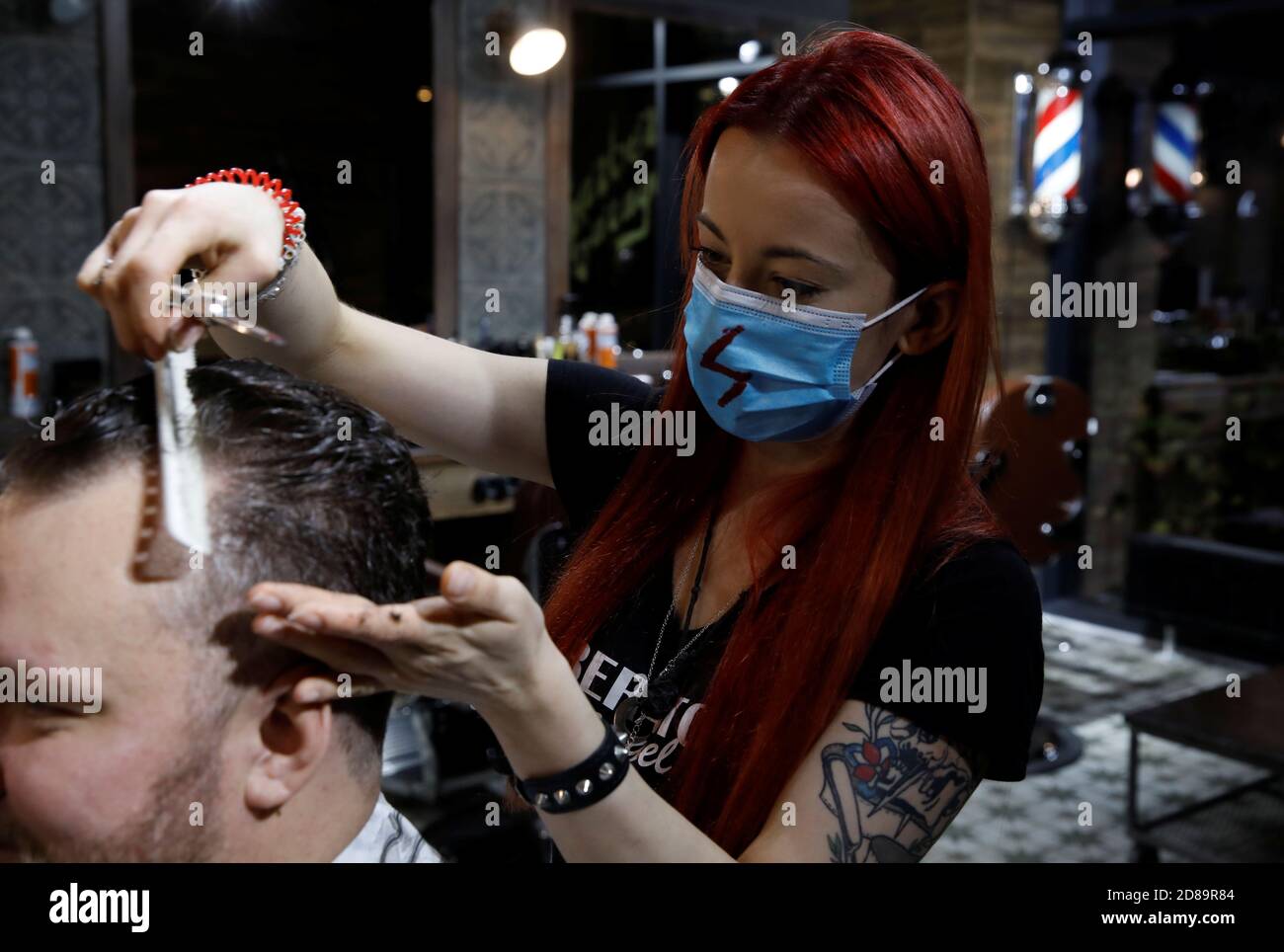 Barber Kinga Rutkowska 22 Cuts Hair At A Barbershop In Warsaw October 27 2020 She And Her Male Colleagues Will Close The Shop On Wednesday And Will Take Part In Protest Against